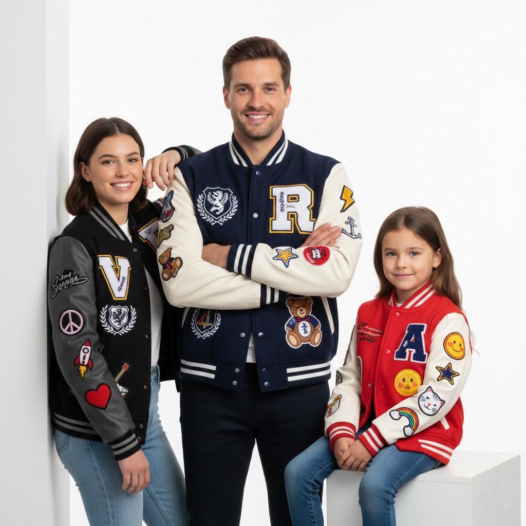 My Letterman Club® Varsity Jackets for Men and Women, featuring genuine cowhide leather sleeves. Leather jackets are versatile clothing items available in various styles, materials, and colors for both men and women. They are valued for style, durability, and warmth.